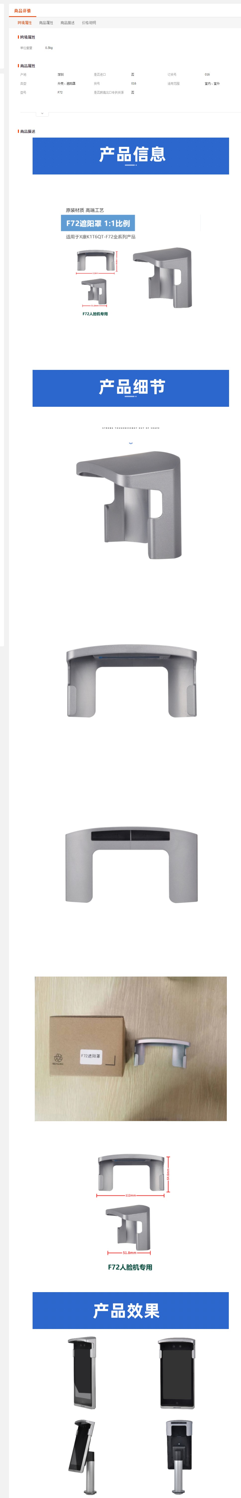 F72海康人脸门禁机防雨遮阳罩户外防水保护罩通道闸机厂家优惠